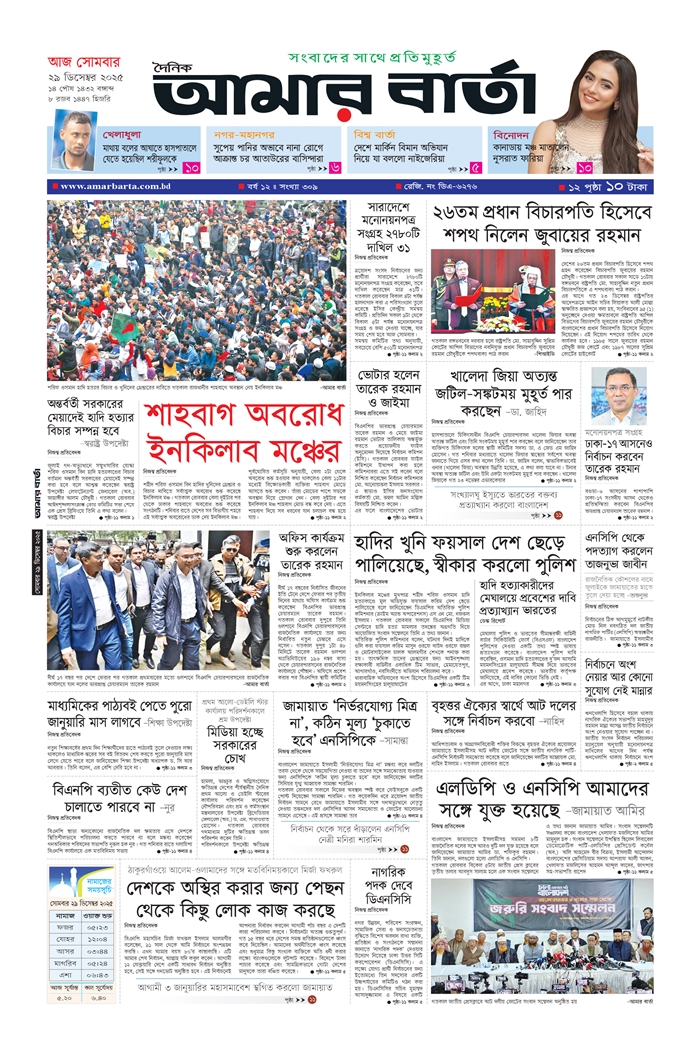 সোমবার, ২৯ ডিসেম্বর ২০২৫, ১৪ পৌষ ১৪৩২