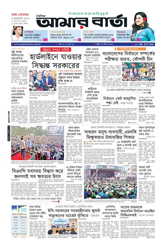 সোমবার, ০৯ ফেব্রুয়ারি ২০২৬, ২৫ মাঘ ১৪৩২