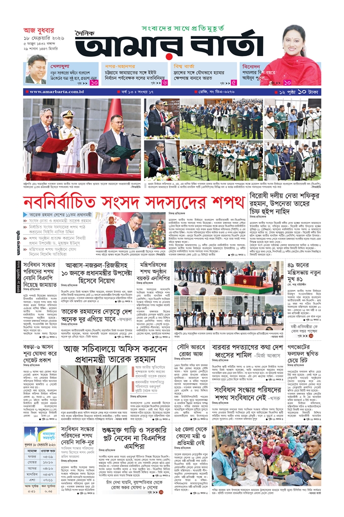 বুধবার, ১৮ ফেব্রুয়ারি ২০২৬, ৪ ফাল্গুন ১৪৩২