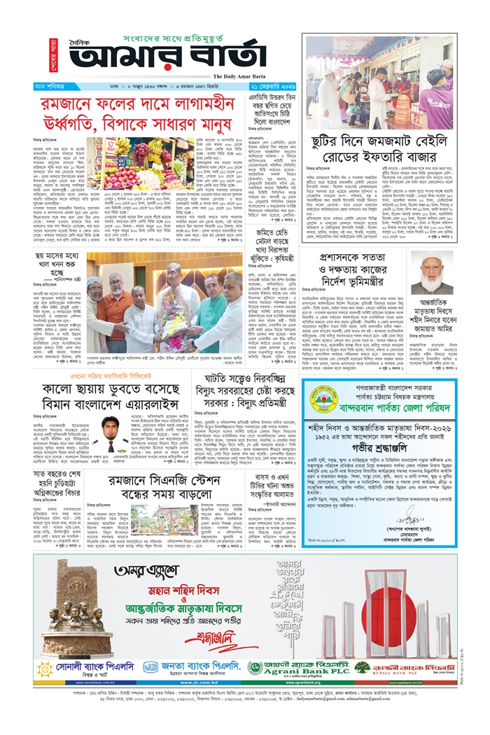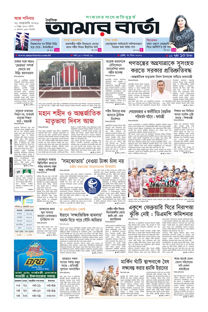 শনিবার, ২১ ফেব্রুয়ারি ২০২৬, ৭ ফাল্গুন ১৪৩২