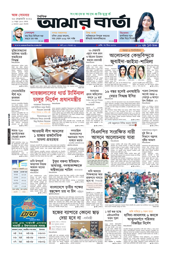 সোমবার, ২৩ ফেব্রুয়ারি ২০২৬, ৯ ফাল্গুন ১৪৩২