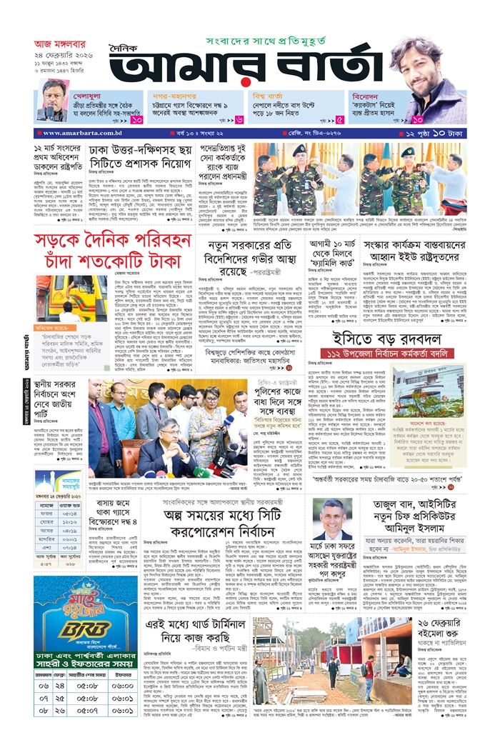 মঙ্গলবার, ২৪ ফেব্রুয়ারি ২০২৬, ১০ ফাল্গুন ১৪৩২