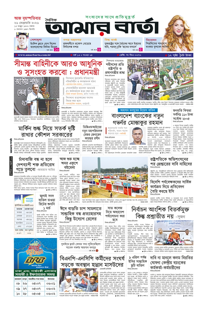 বৃহস্পতিবার, ২৬ ফেব্রুয়ারি ২০২৬, ১২ ফাল্গুন ১৪৩২