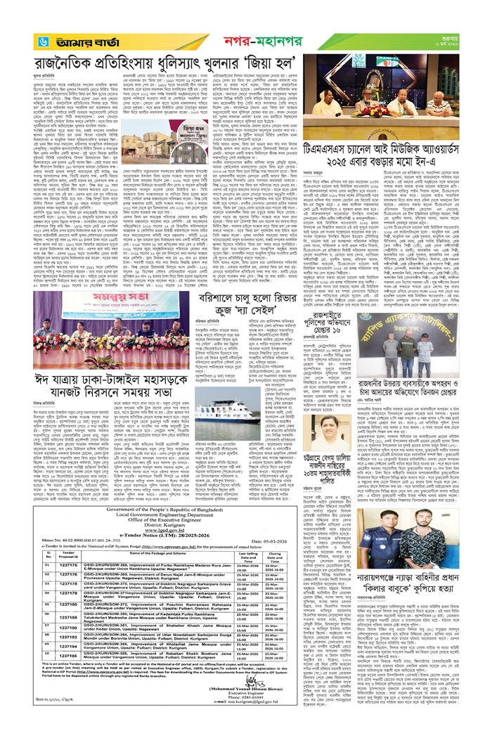 শুক্রবার, ০৬ মার্চ ২০২৬, ২০ ফাল্গুন ১৪৩২