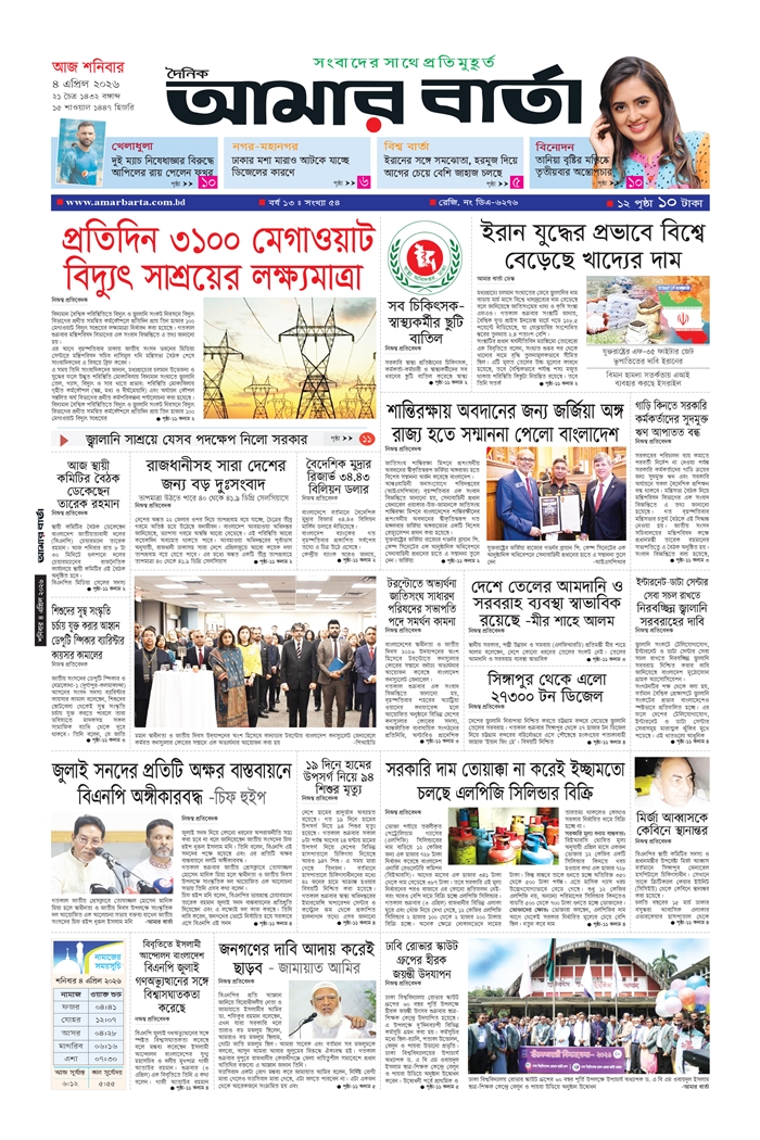 শনিবার, ০৪ এপ্রিল ২০২৬, ২১ চৈত্র ১৪৩২