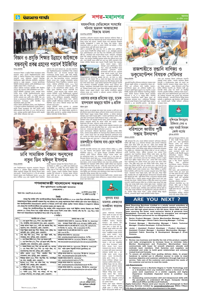 সম্পাদক : মোঃ জসিম উদ্দিন। প্রধান কার্যালয় : সায়হাম স্কাইভিউ টাওয়ার (৯ম তলা), ৪৫ বিজয় নগর, ঢাকা-১০০০। ফোন : পিএবিএক্স ৮৩৯২৬৬১, ৮৩৯২৬৬২, বার্তা বিভাগ : ৮৩৯২৬৬৩, বিজ্ঞাপন বিভাগ : ৮৩৯২৬৬৫। সার্কুলেশন : ৮৩৯২৬৬৪ ই-মেইল :